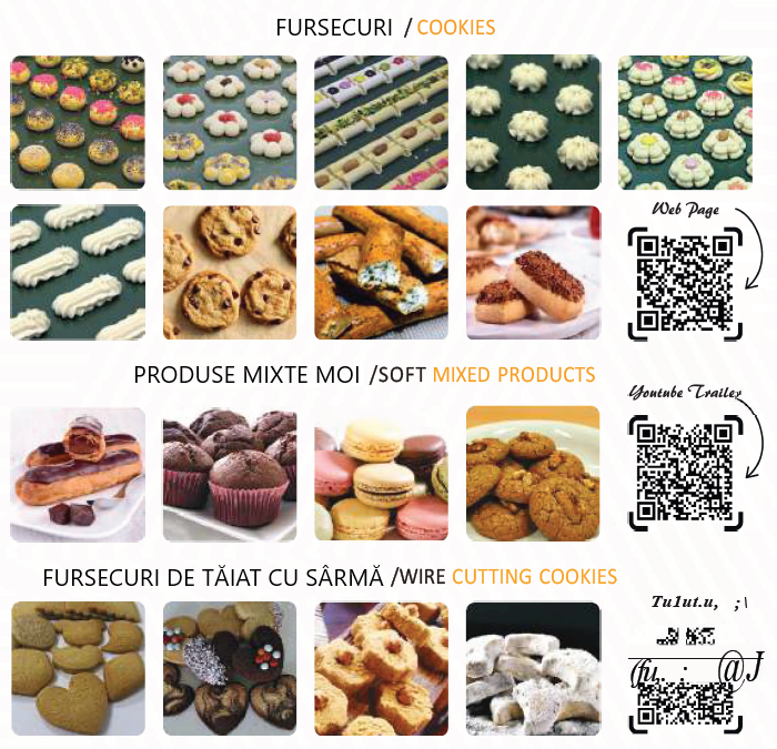 Cu Mini CookieMAK, care dispune de un sistem de tăiere cu sârmă, un sistem de turnare a prăjiturilor și zeci de opțiuni de matrițe, puteți obține sute de produse diferite.